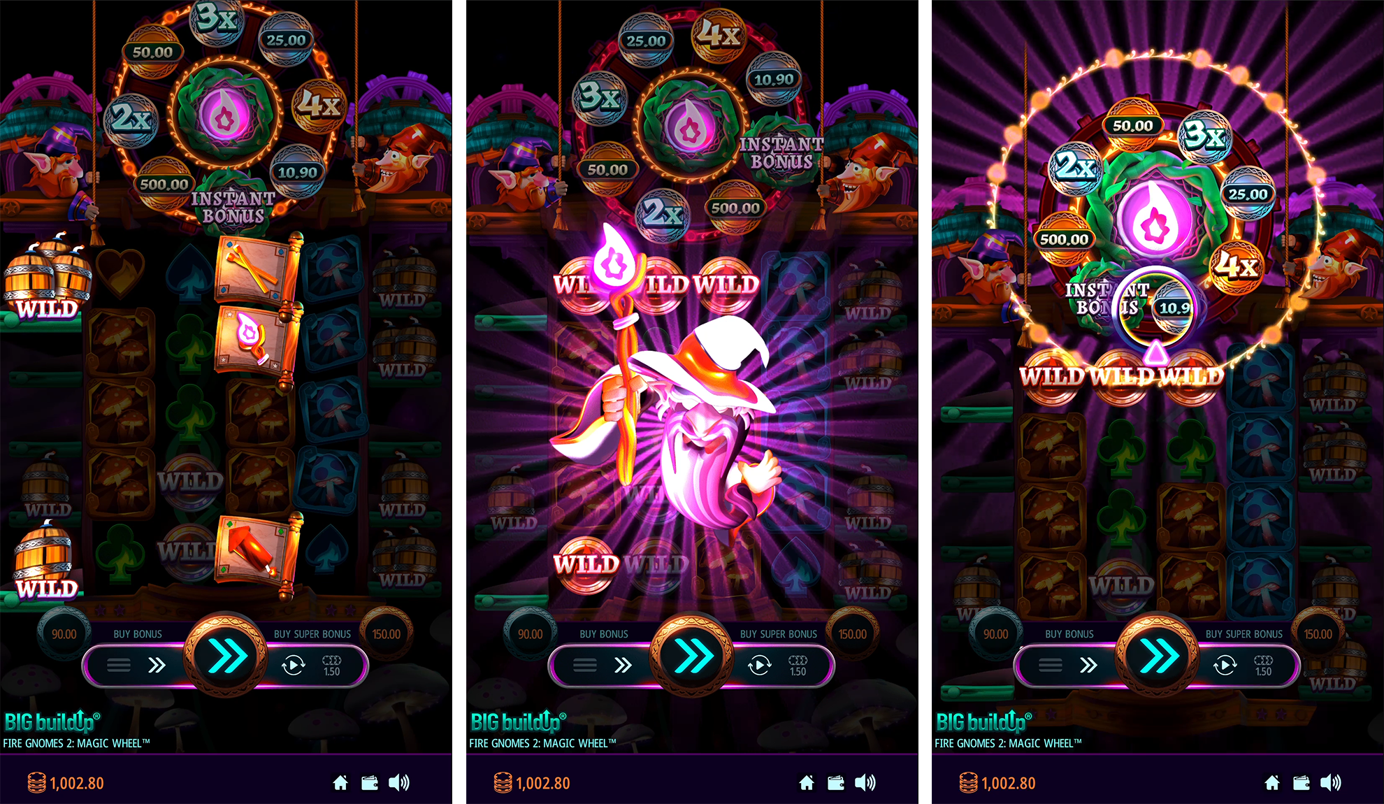 The fire obsessed gnomes are back to boost your wins, this time with the added power of the magic wheel which offers win multipliers, prizes, and even a path straight to the Fire Gnomes Bonus!